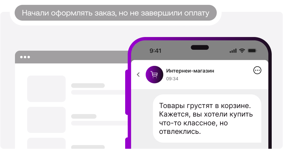 • Интернет-магазин — сообщения о «забытом» в корзине товаре, чтобы подтолкнуть посетителя к покупке.